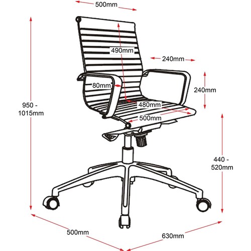 Rapidline PU605M Boardroom Chair Black Base And Arms Medium Back Black Ribbed PU