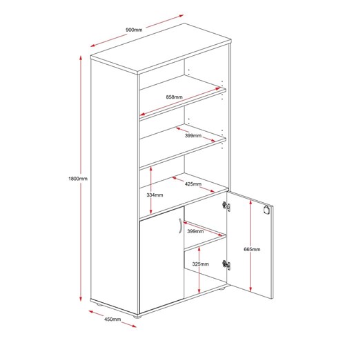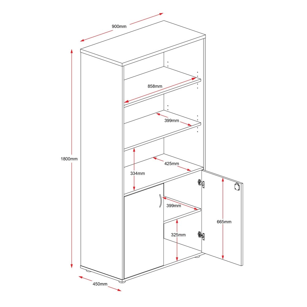Lockable. 1 fixed shelf in cupboard. 2 adjustable open shelves. Soft close hinges. E0 enviroboard. 5 Year Manufacturer's Warranty. Delivery, installation and assembly charges may apply to furniture. Please enquire to confirm.