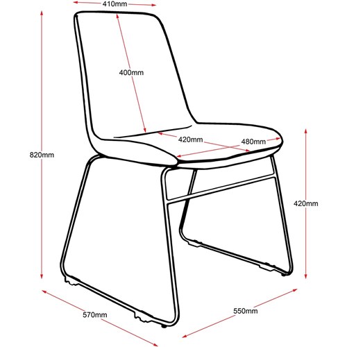Comfortable conference or meeting chair with sturdy powder coated sled base. Links and stacks. Weight rating 110kg. Overall Size: 550W x 570D x 820mmH. Chair Dimensions: 480W x 420D x 420mmH. 5 Year Manufacturer's Warranty. Delivery, installation and assembly charges may apply to furniture. Please enquire to confirm.