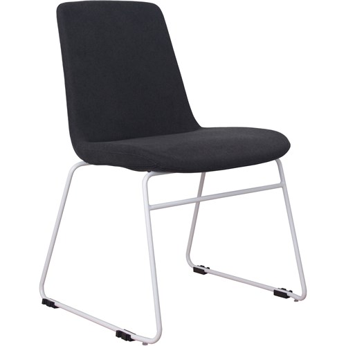 Rapidline Tempo Visitor Chair White Sled Base Black Padded Fabric Upholstery