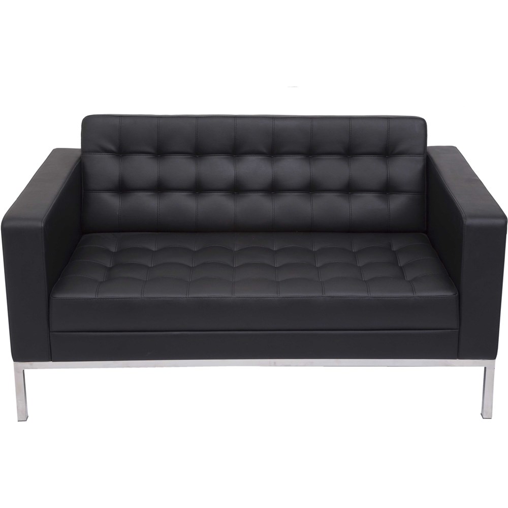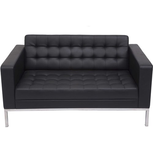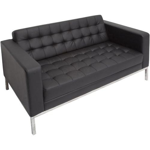 Rapidline Venus Double Sofa Stainless Steel Frame Button Finish Black PU Upholstery