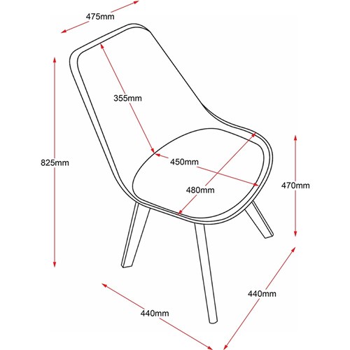 Grey shell and black pad. Polypropylene shell. Solid timber legs. Soft upholstered seat pad Great for Breakout and Collaboration spaces. Chair Dimensions: 440W x 440D x 825mmH. Seat Height 470mm. 3 Year Manufacturer's Warranty. Delivery, installation and assembly charges may apply to furniture. Please enquire to confirm.