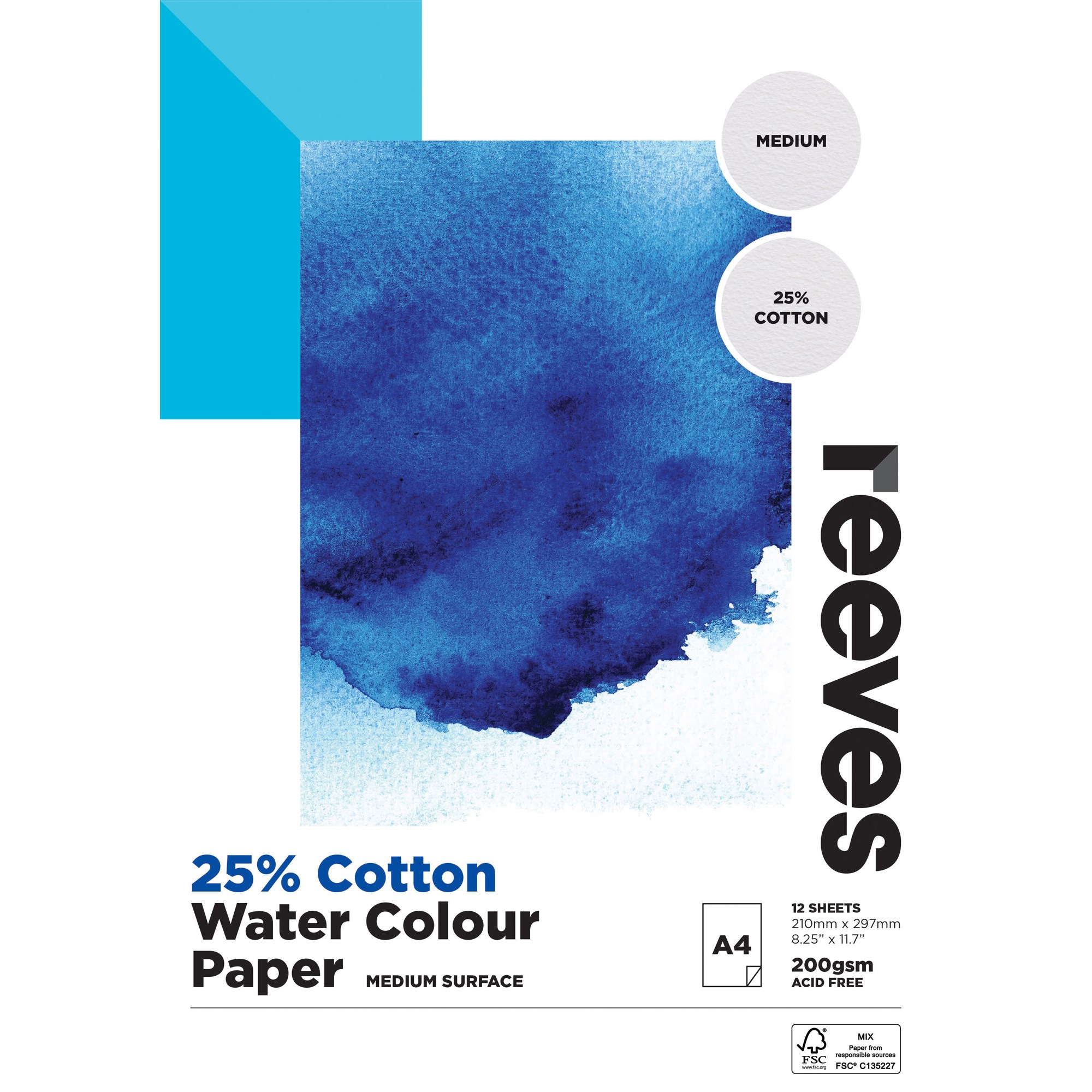 Reeves Cotton Mix Water Colour Pad A4 200gsm FSC 12 Sheets
