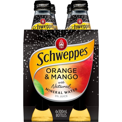 Schweppes Orange/Mango Natural Mineral Water 300ml Glass Bottle Pack Of 24