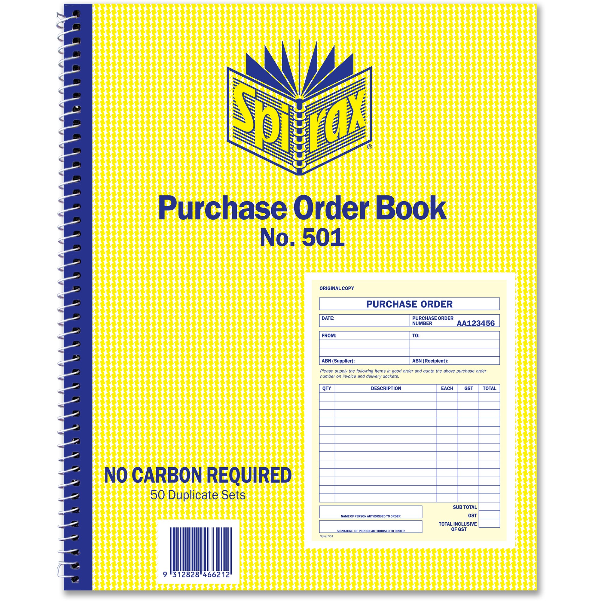 Spirax 501 Purchase Order Book Carbonless Quarto 250 x 200mm 50 Duplicate Sets Side Opening