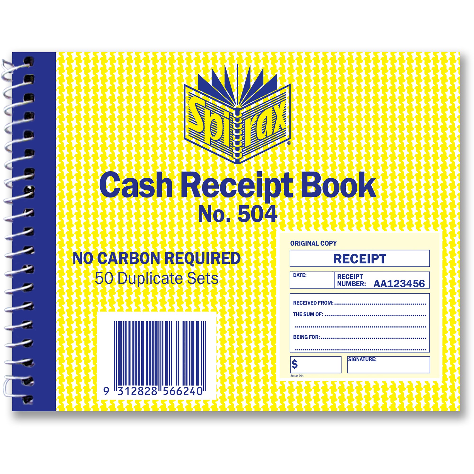 Spirax 504 Cash Receipt Book Carbonless 102 x 127mm 50 Duplicate Sets Side Opening