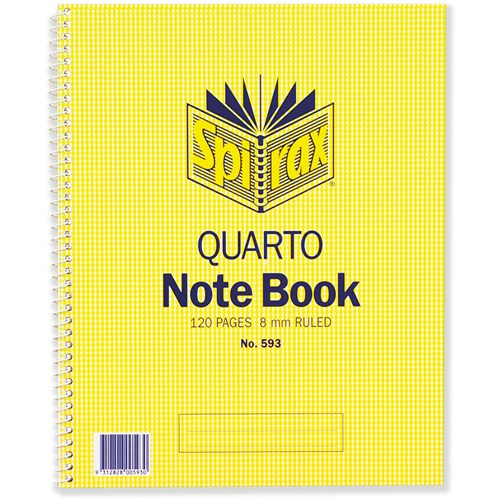 Spirax 593 Quarto Notebook 250 x 200mm Ruled 120 Page Side Opening