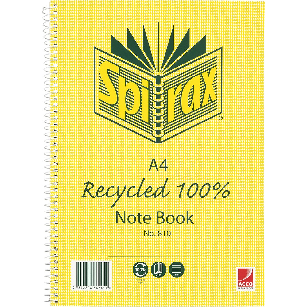 Spirax 810 Recycled 100% Notebook A4 Ruled 120 Pages Side Opening