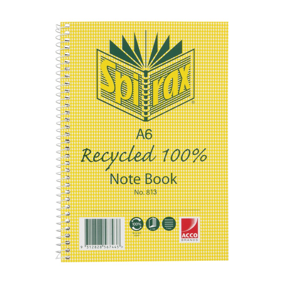 Spirax 813 Recycled 100% Notebook A6 Ruled 100 Pages Side Opening