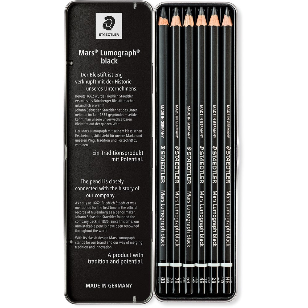 Staedtler 100 Mars Lumograph Sketching Pencils Assorted Degrees Black Pack of 6