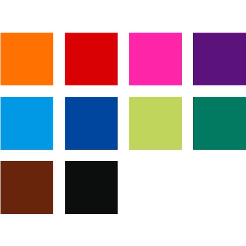 • Box 10 assorted -1 each orange, red,pink,violet,light blue, blue, light green,green, brown and black.