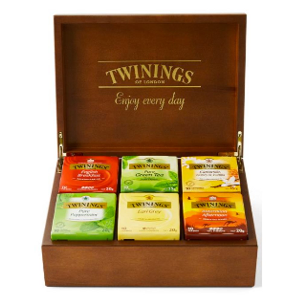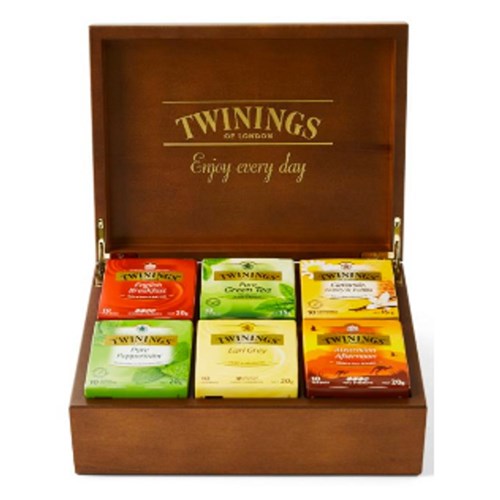 6 compartments contains a combination of teas in a uniquely crafted wooden box including: English Breakfast, Pure Peppermint, Pure Green, Earl Grey, Camomile Honey and Australian Afternoon tea. Ideal for kitchens, boardrooms and staff rooms to stock up on teabags for events, functions, special occasions and work meetings.