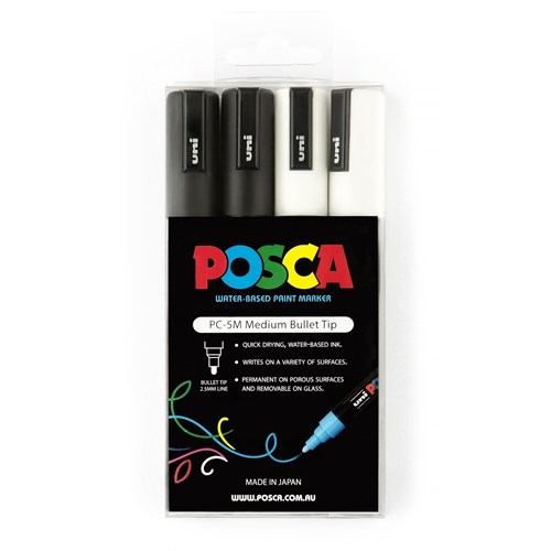 Uni Posca PC-5M Paint Marker Medium 2.5mm Bullet Tip Black And White Wallet Of 4