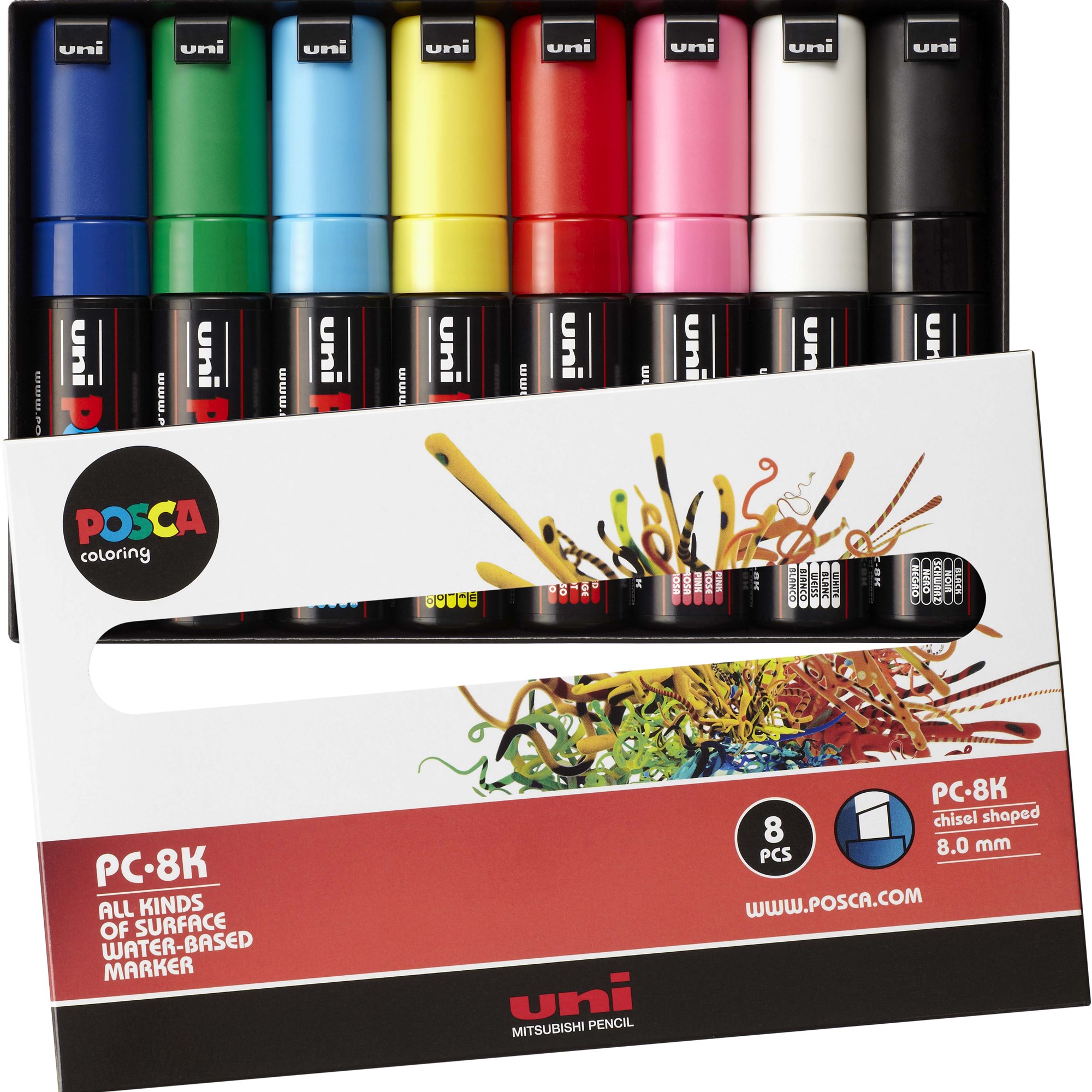Uni Posca PC-8K Paint Marker Broad 8mm Chisel Tip Assorted Colours Wallet Of 8