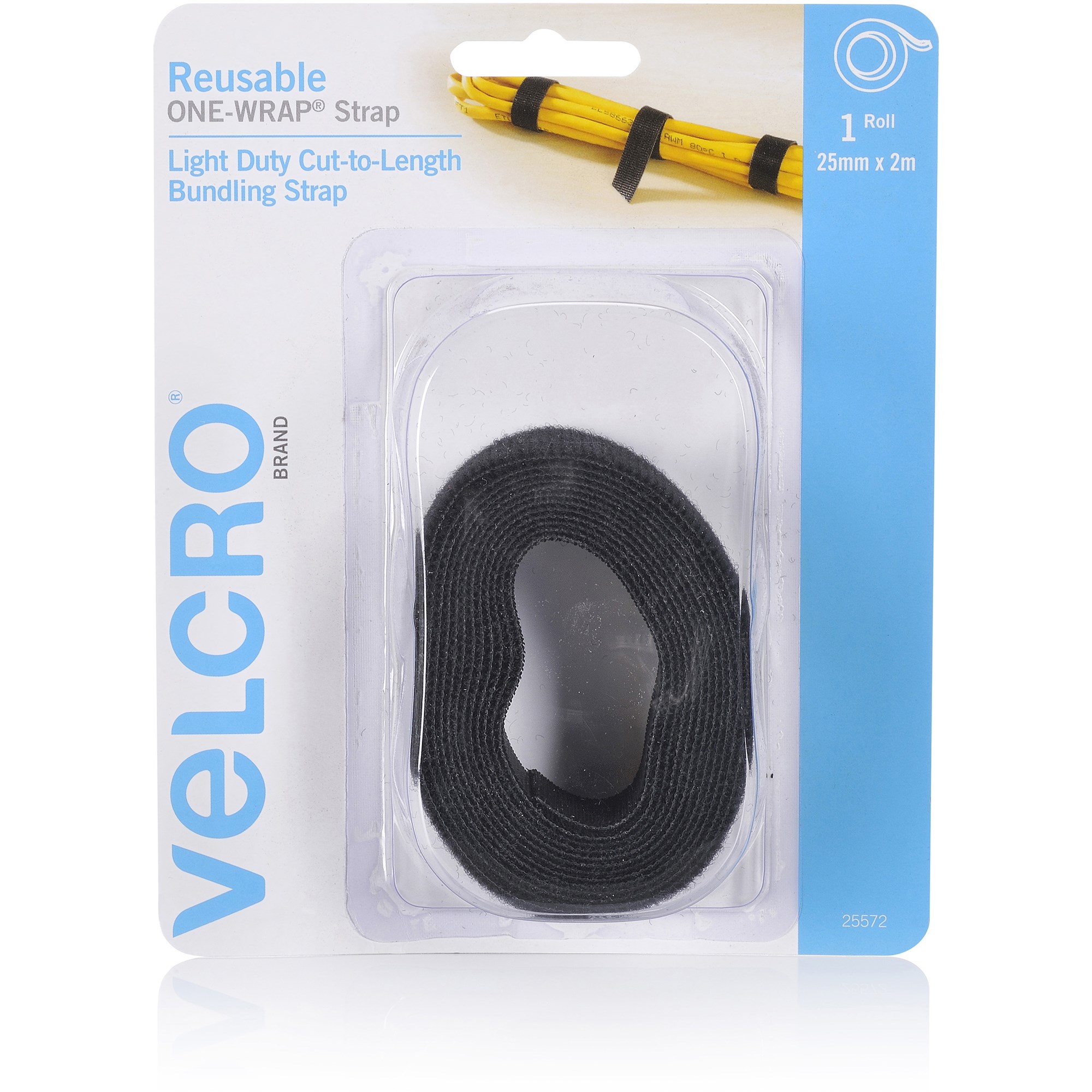 Velcro Brand Reusable Light Duty One Wrap 25mm x 2m Bundling Strap Black