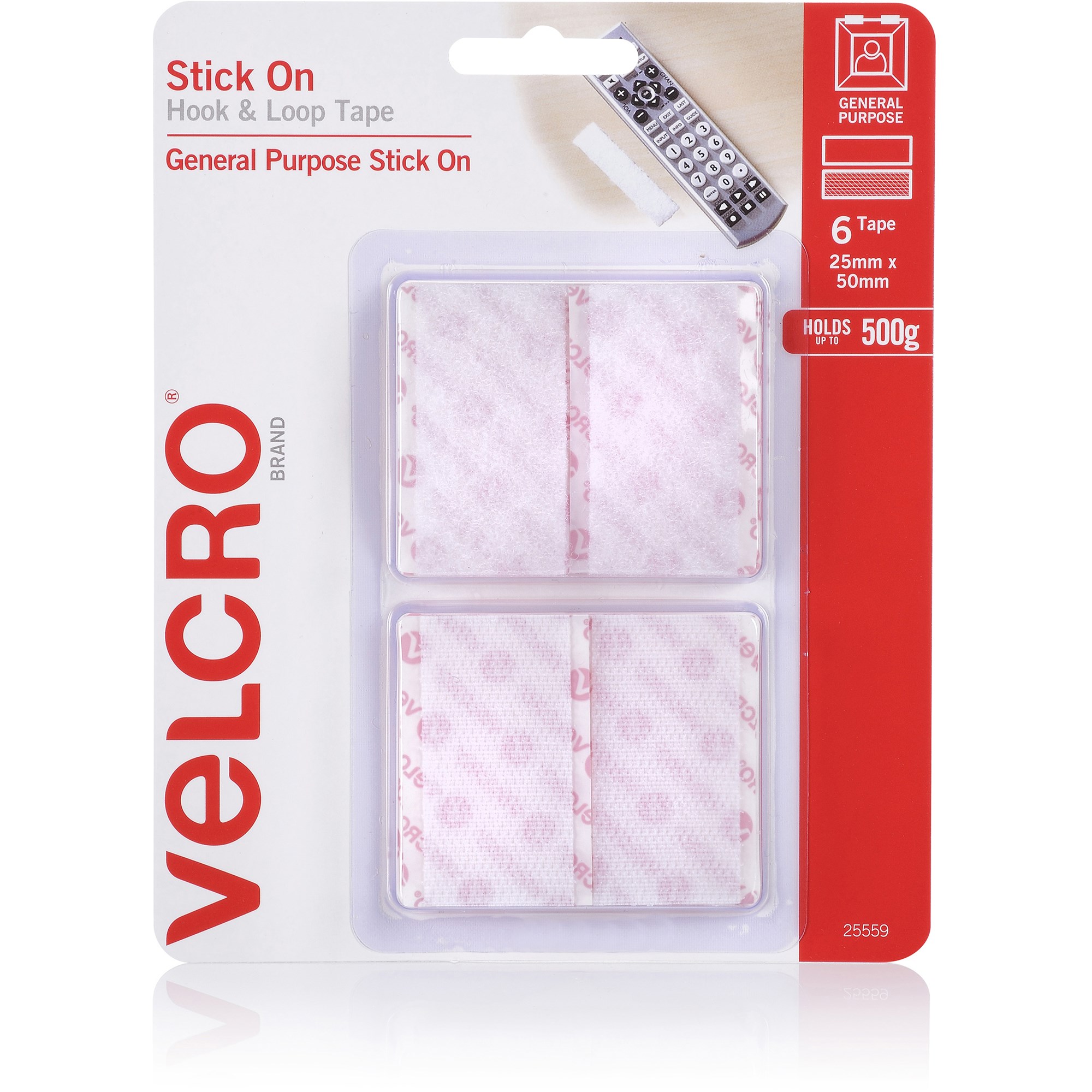 Velcro Brand Stick On Hook & Loop 25mm x 50mm Tape Pack Of 6