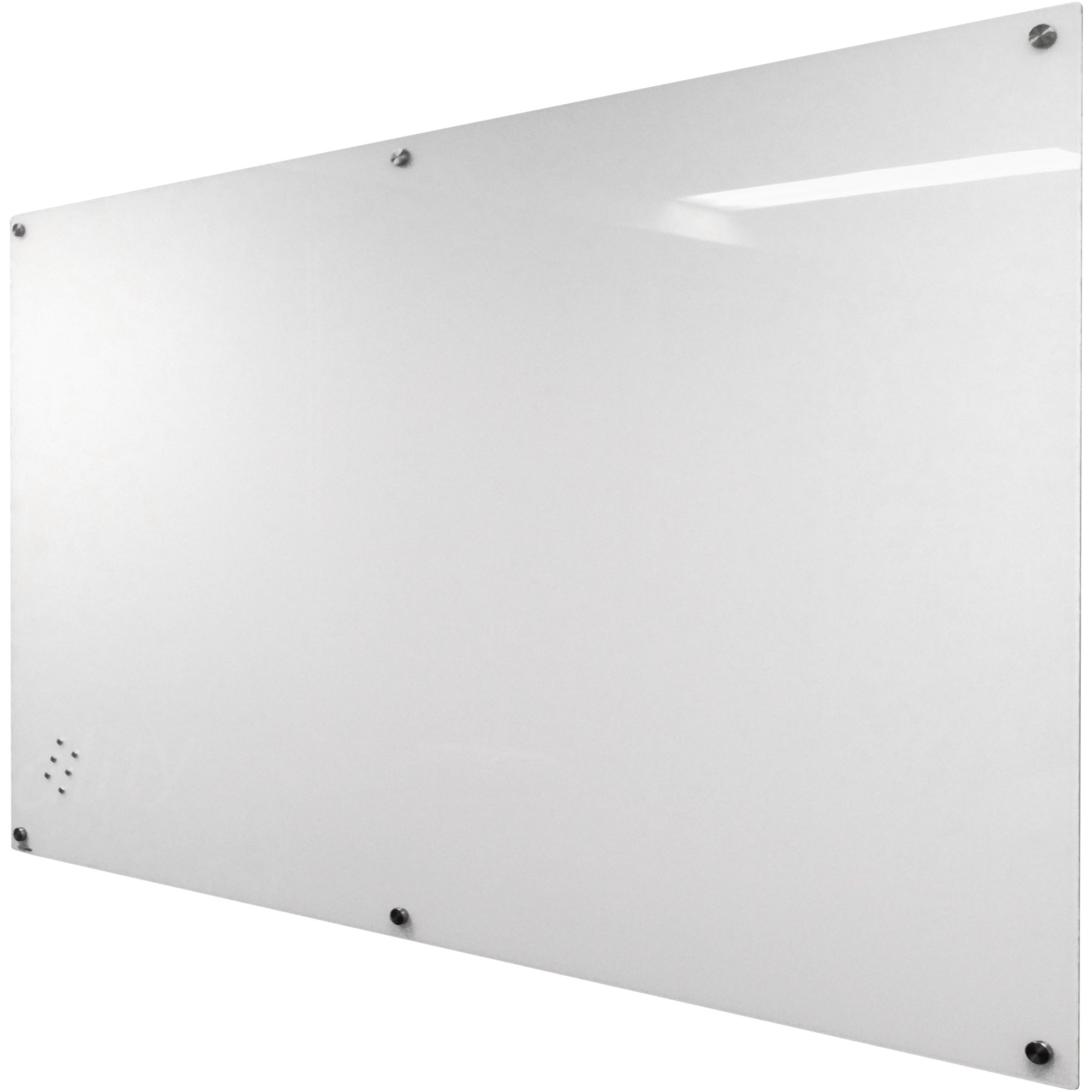 Toughened 4mm safety glass. Polished edge. Rounded corners. Magnetic surface. Includes clear acrylic pen tray. 50 year warranty on erasing surface. White glassboard has white fittings, black glassboard has silver fittings.