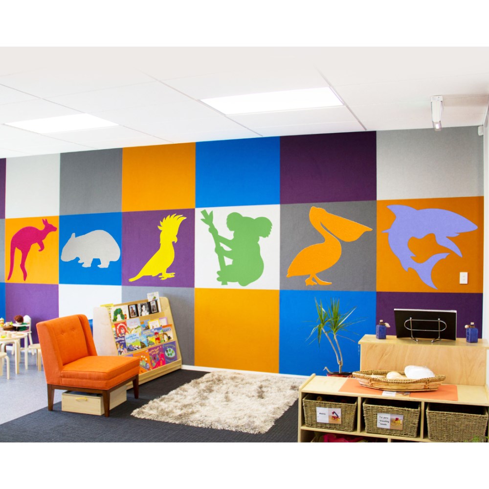Australian animal adhesive backed tile brings colour, fun and function while reducing noise in learning environments. Pinnable, velcro receptive, environmentally friendly, non toxic, lightweight and very easy to install. The 6 pack of tiles consists of individual Australian animal shapes cut from contrasting colours. Use just the animal shape, or the whole 600 x 600mm tile. Colours are assorted. Use alongside standard 600 x 600m easy stick tiles to create a large unique colourful area to inspire creativity. Easy to self install - just peel and stick to most surfaces. Made to order, lead time varies.