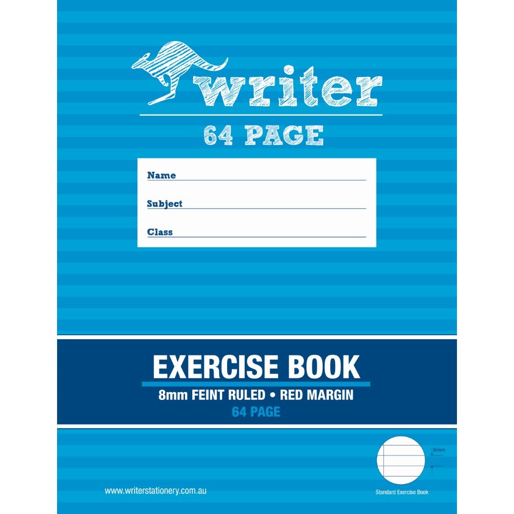 Writer Exercise Book 225 x 175mm 64 Page 8mm Ruled Red Margin