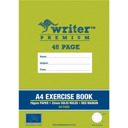 Writer Premium Exercise Books feature heavy duty covers, high quality white 70gsm paper. Teachers reference Umbrella.