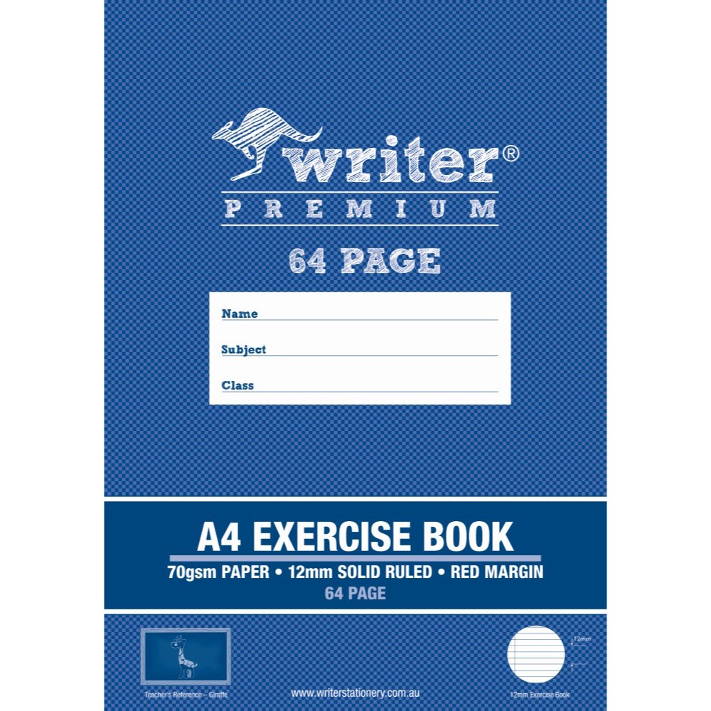Writer Premium Exercise Books feature heavy duty covers, high quality white 70gsm paper. Teachers reference Giraffe.