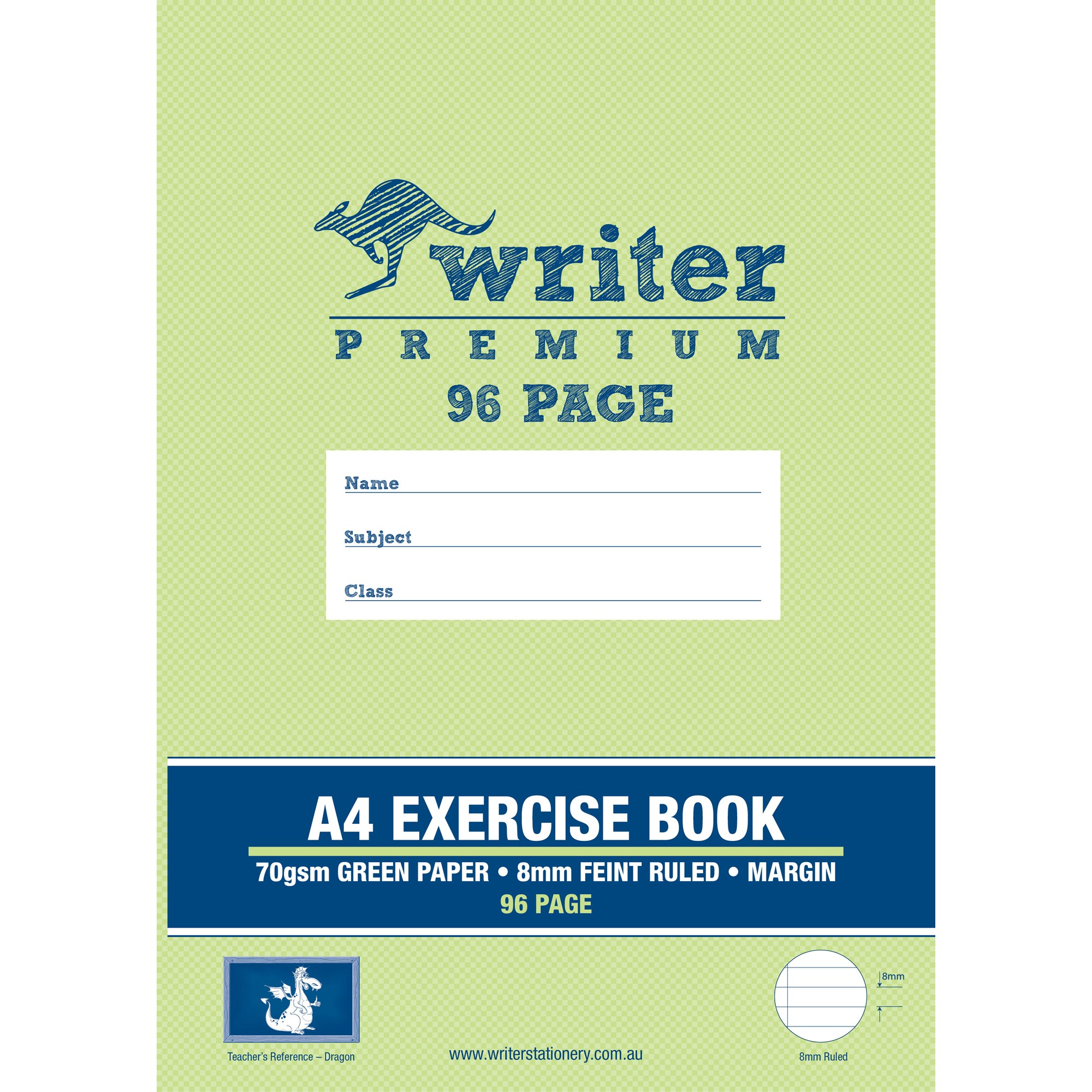 Writer Premium Exercise Book A4 8mm 70gsm With Margin 96 Page Green Paper-Dragon