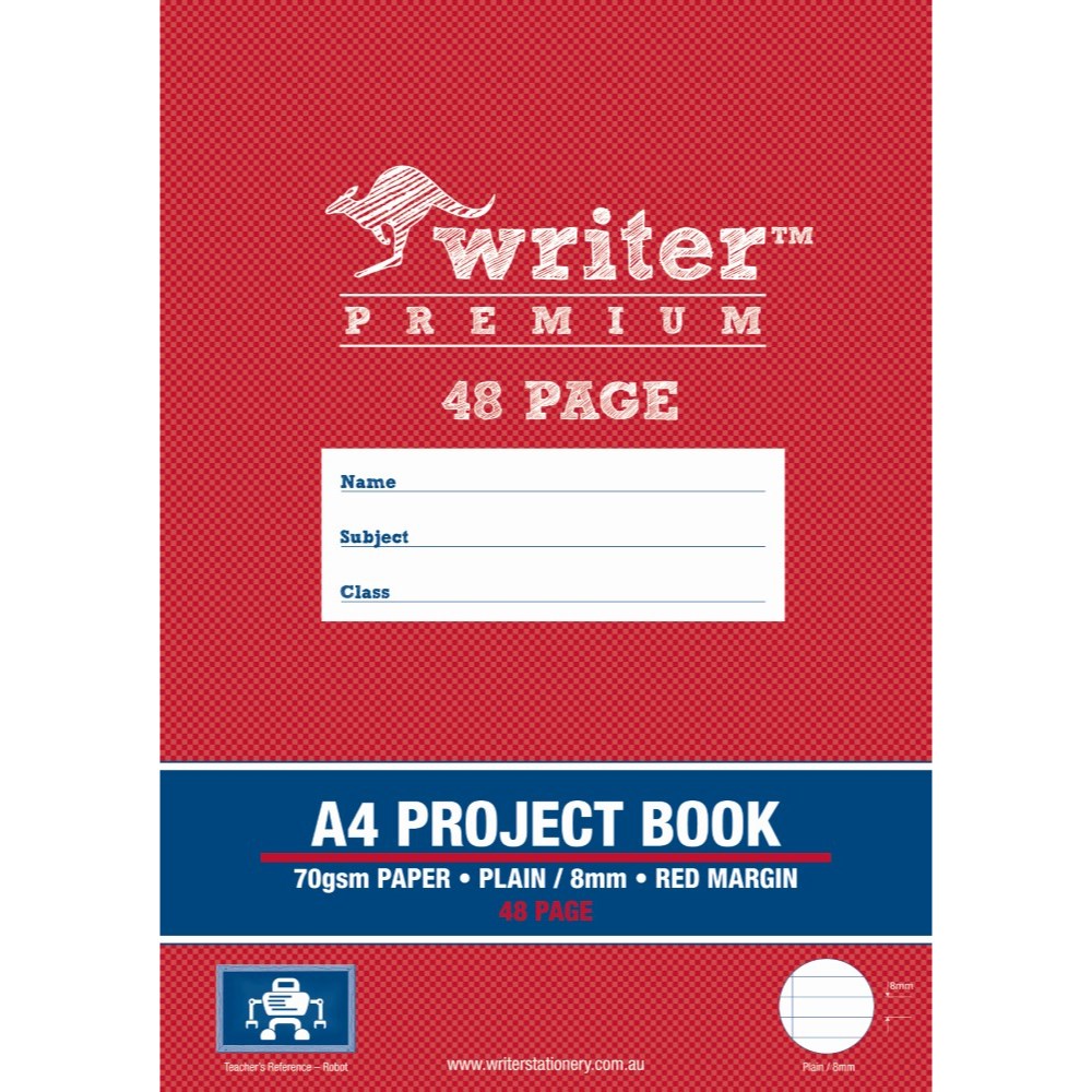 Writer Premium Project Book A4 48 Page Plain/8mm Ruled Red Margin Robot