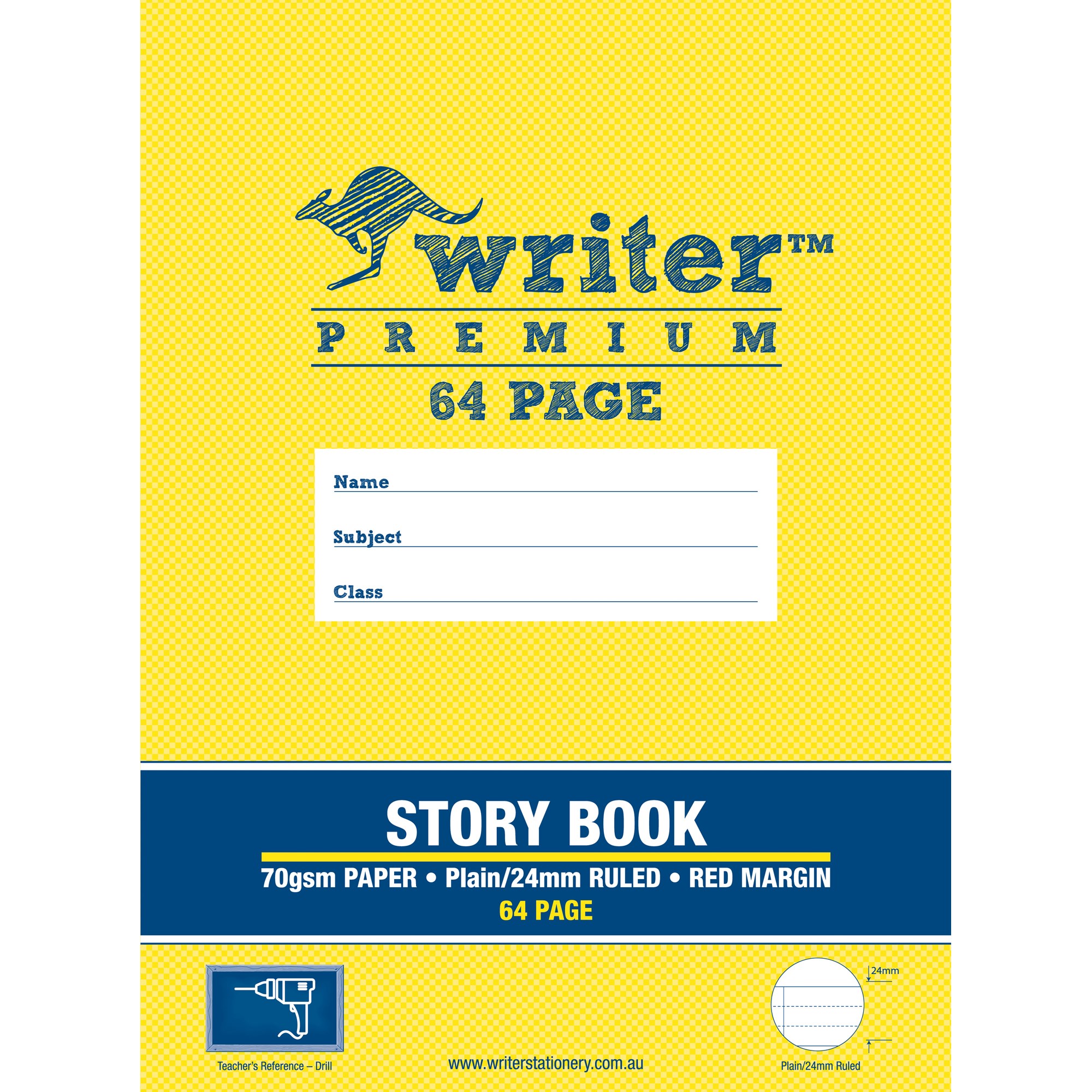 Writer Premium Story Book 330x240mm 64 Page Plain & 24mm Ruled W Margin 100gsm "Drill"