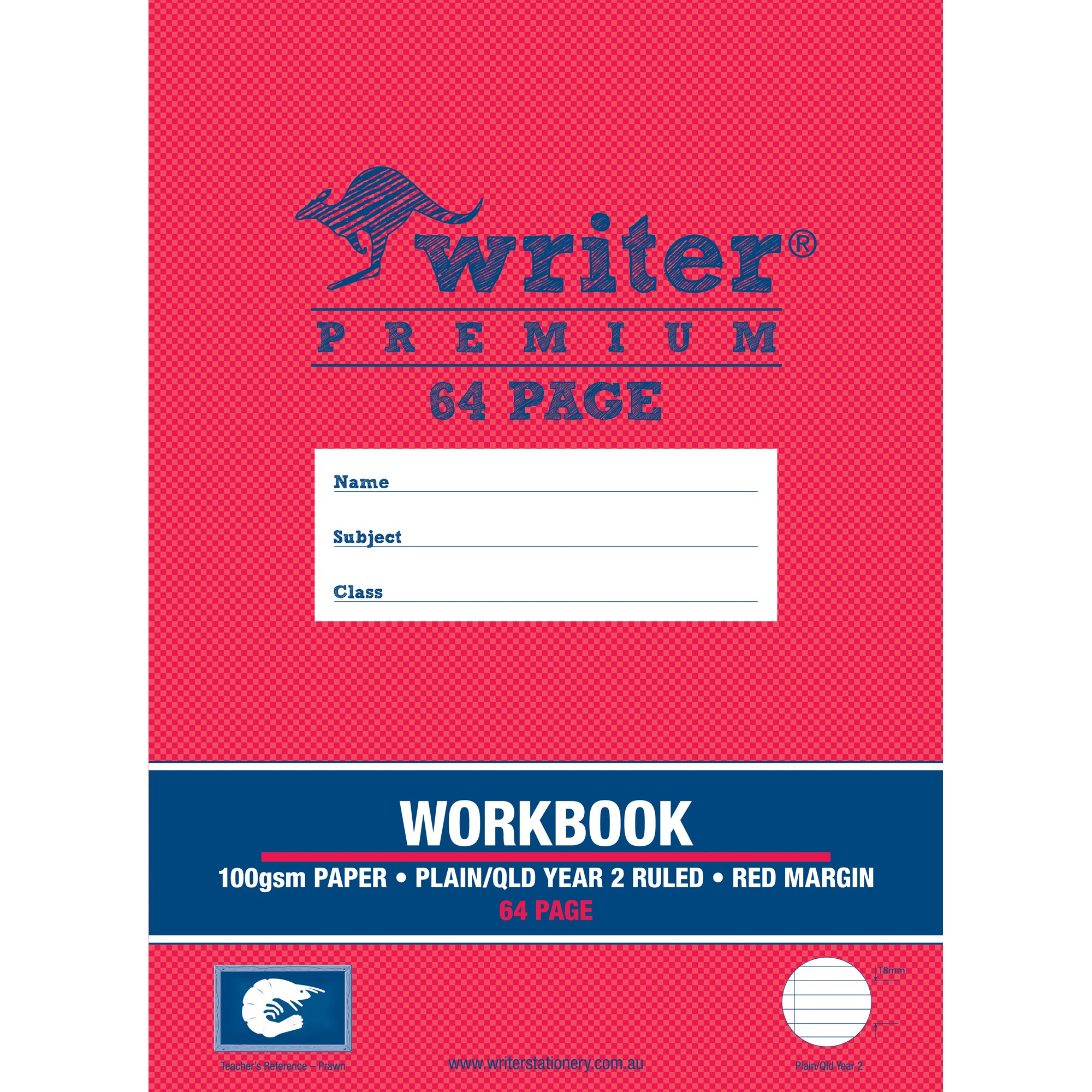 Writer Premium Workbook 330x245mm 64Pg Plain 1 Side/QLD Year 2 Ruled Prawn