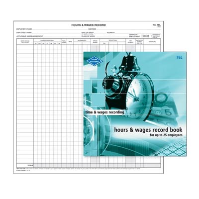Zions 76L Hours & Wages Book Up To 25 Employees 270x265mm