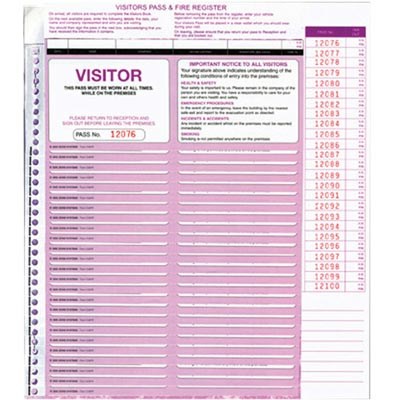 • The Visitors Pass Kit comprises three parts: 1x corporate vistors pass book (250 forms), 1x visitors register pass binder and 25x visitors pass plastic wallets.